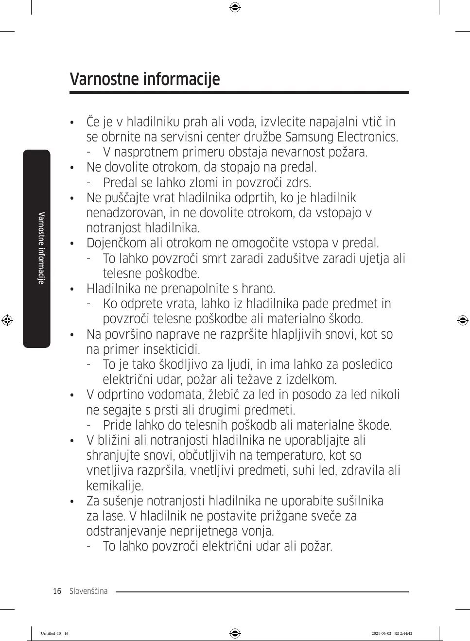 • Dojenčkom ali otrokom ne omogočite vstopa v predal.