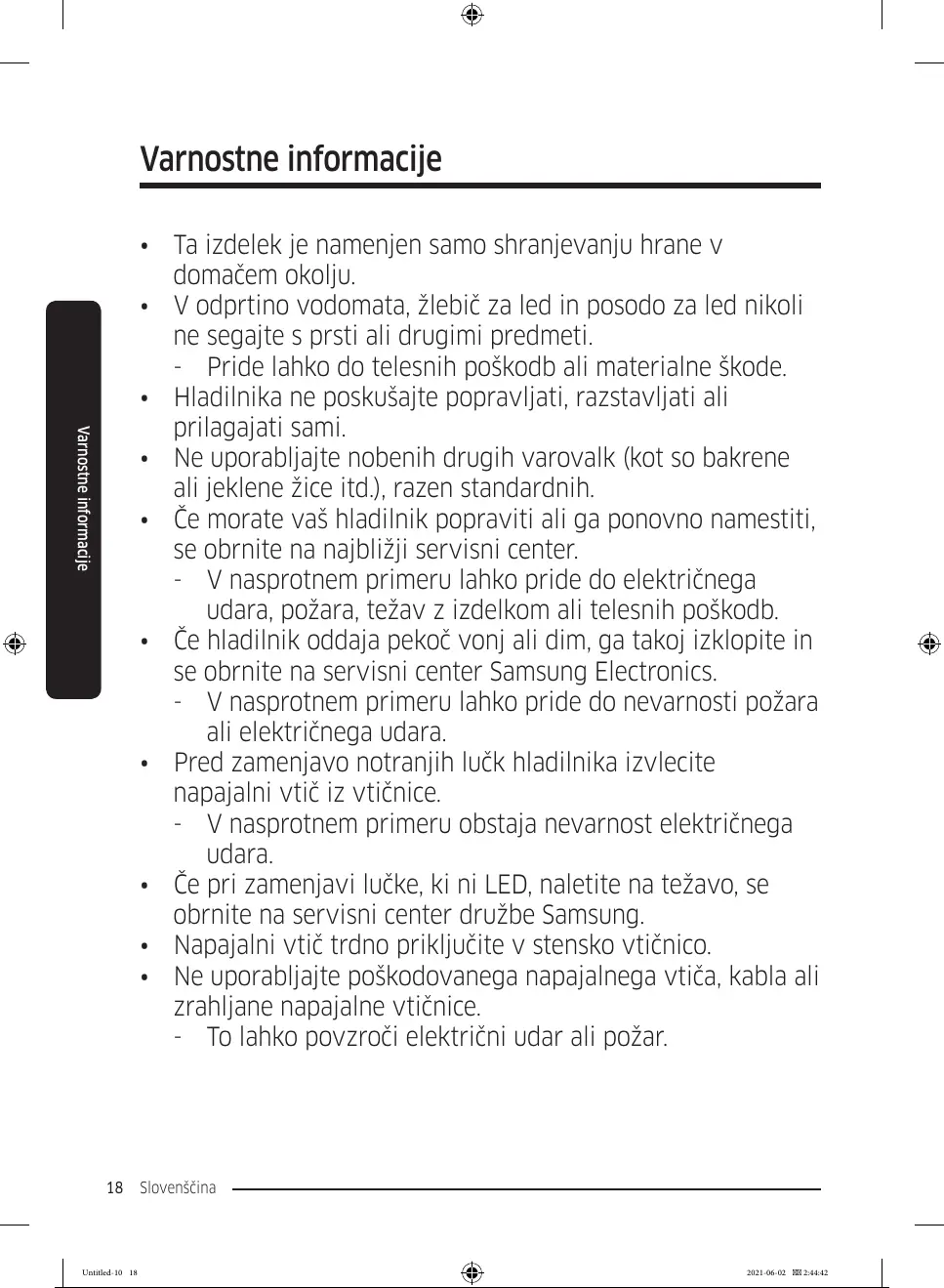 • Če morate vaš hladilnik popraviti ali ga ponovno namestiti,