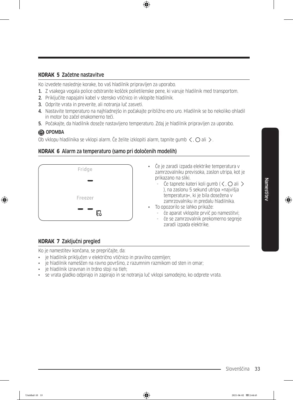 KORAK 6 Alarm za temperaturo (samo pri določenih modelih)