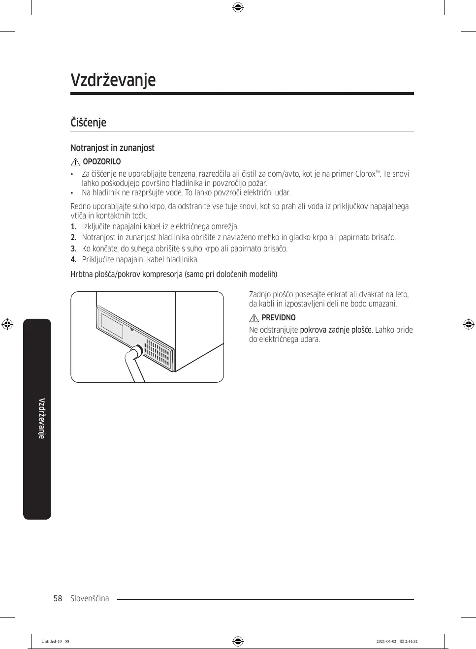 Hrbtna plošča/pokrov kompresorja (samo pri določenih modelih)