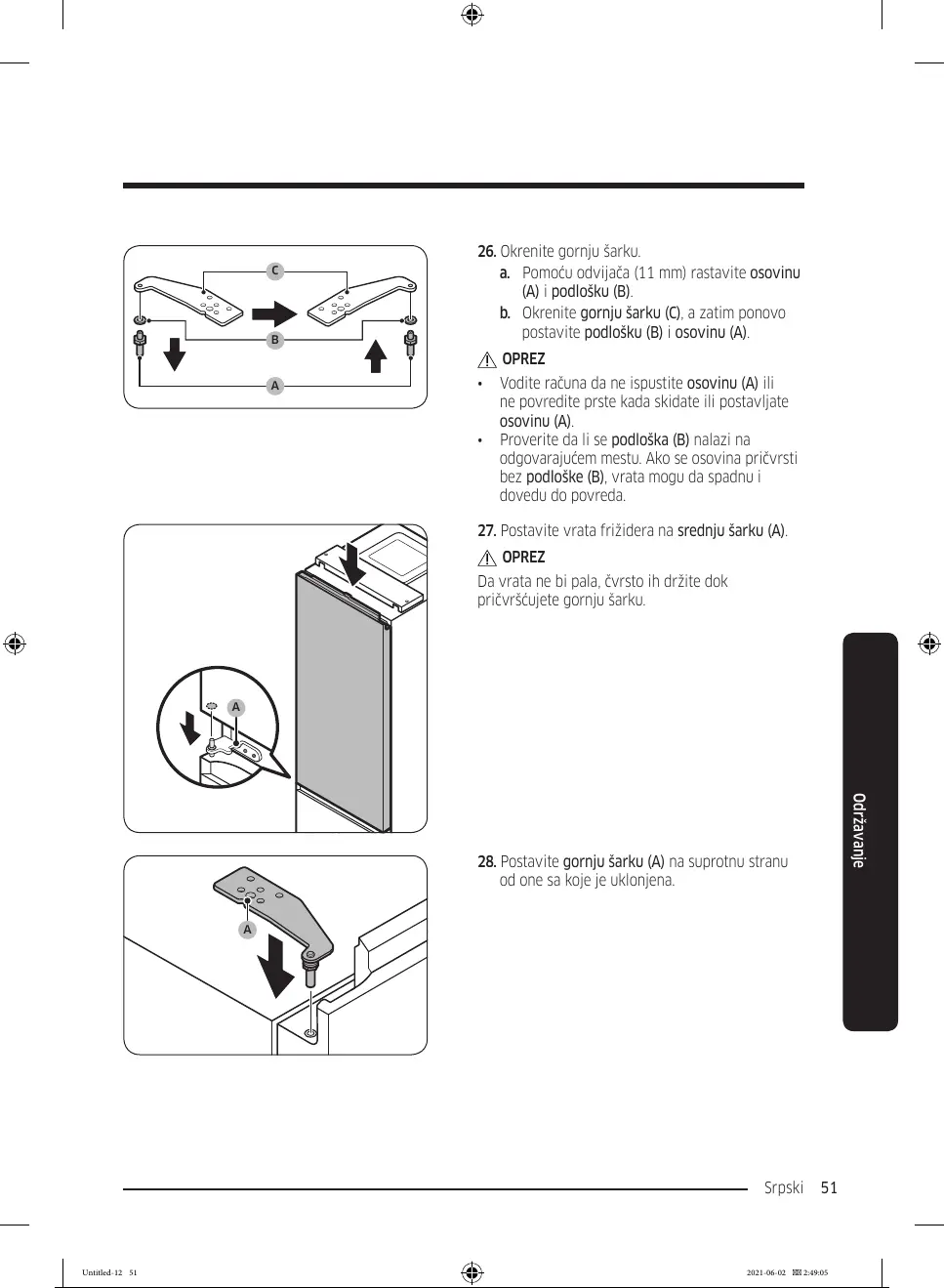28. Postavite gornju šarku (A) na suprotnu stranu