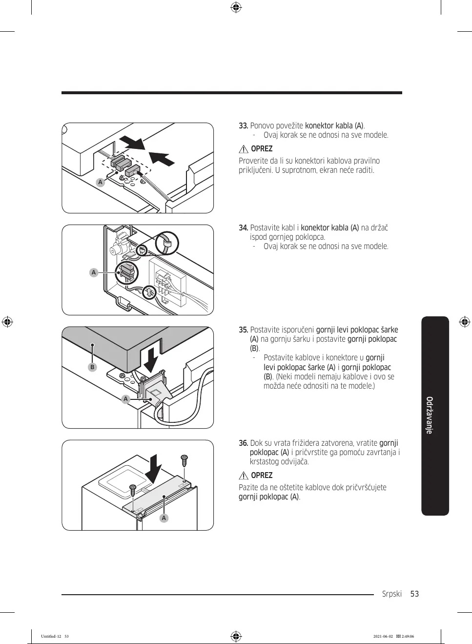 36. Dok su vrata frižidera zatvorena, vratite gornji