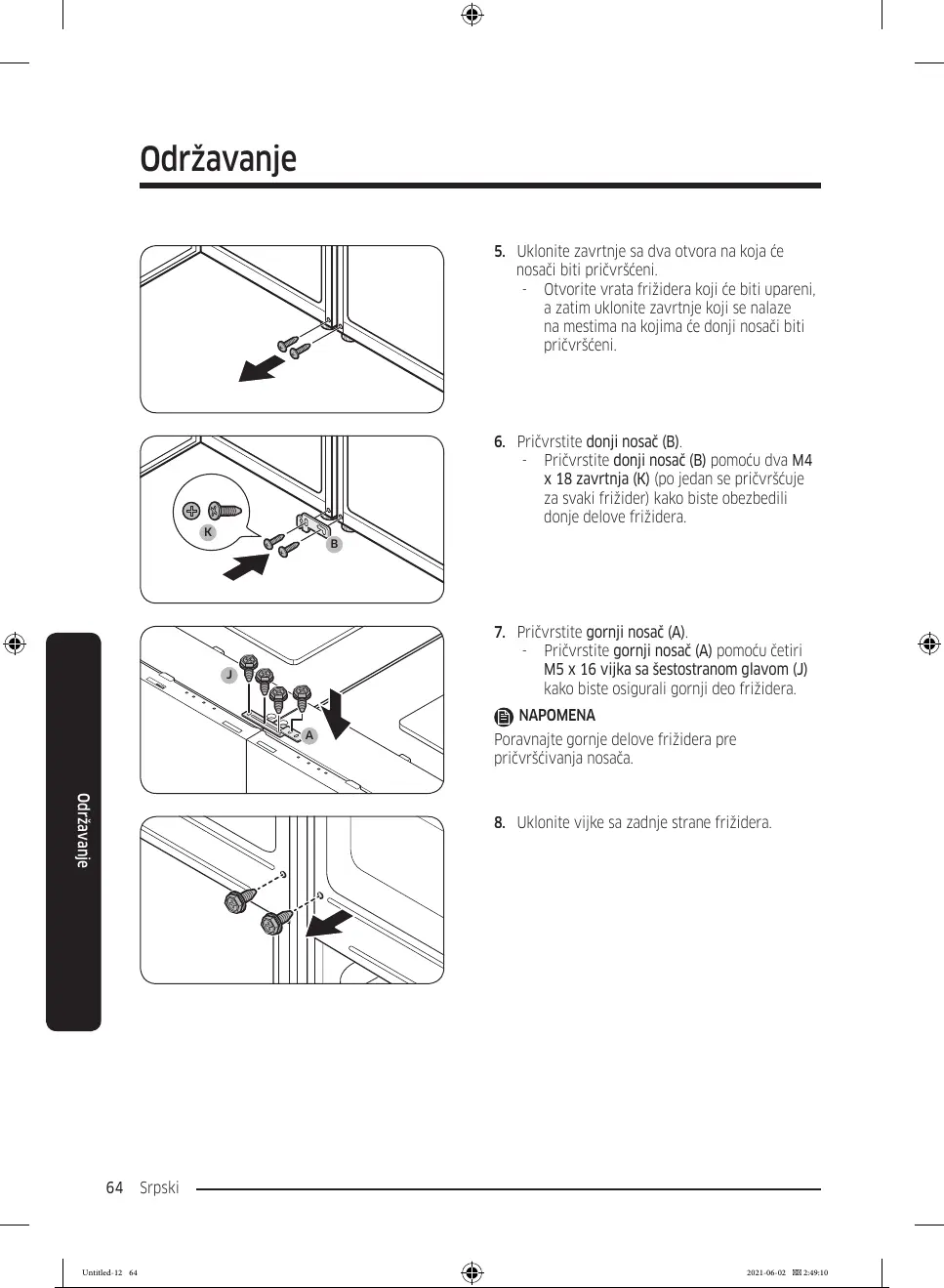 8. Uklonite vijke sa zadnje strane frižidera.