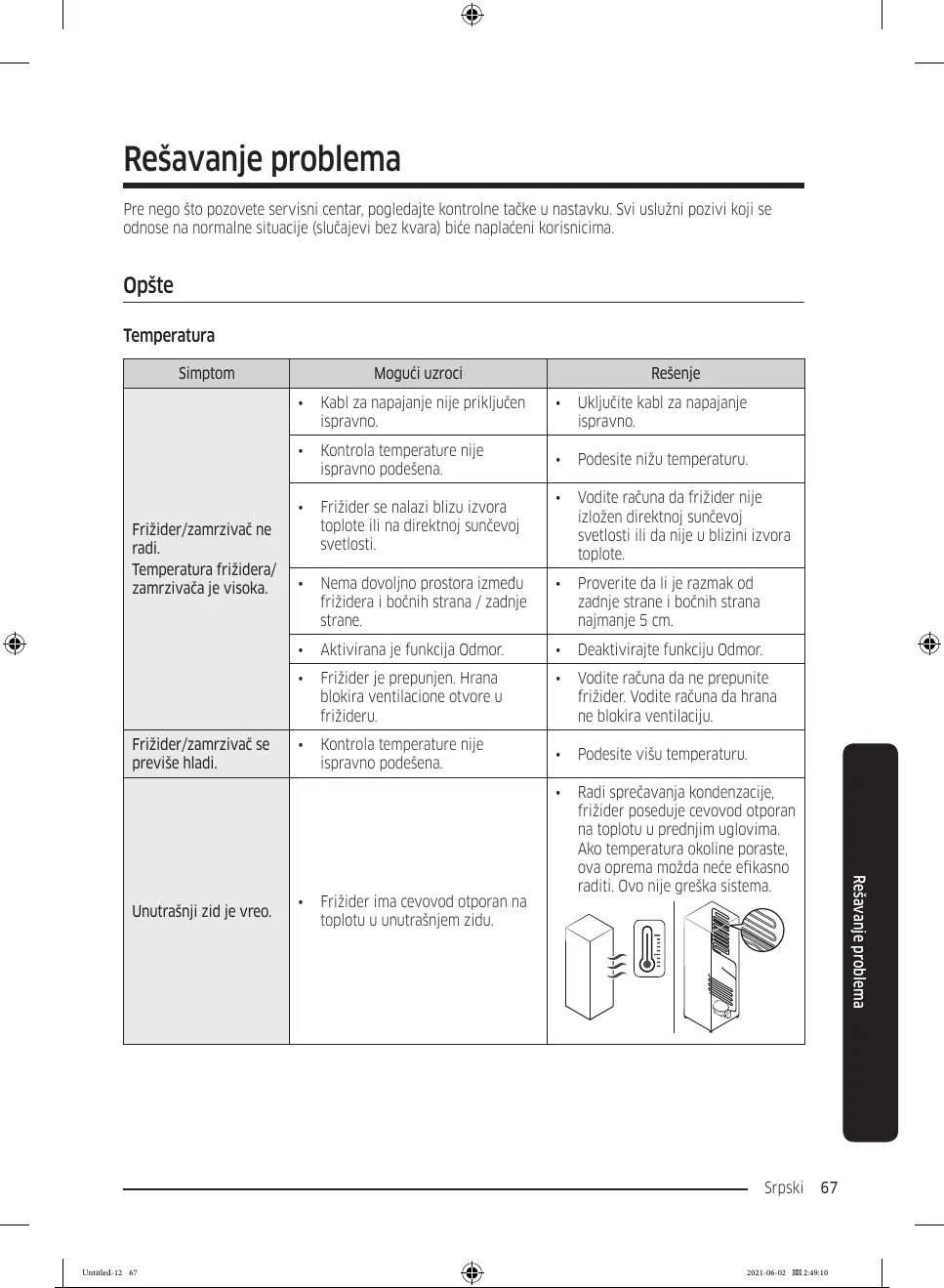 Simptom Mogući uzroci Rešenje