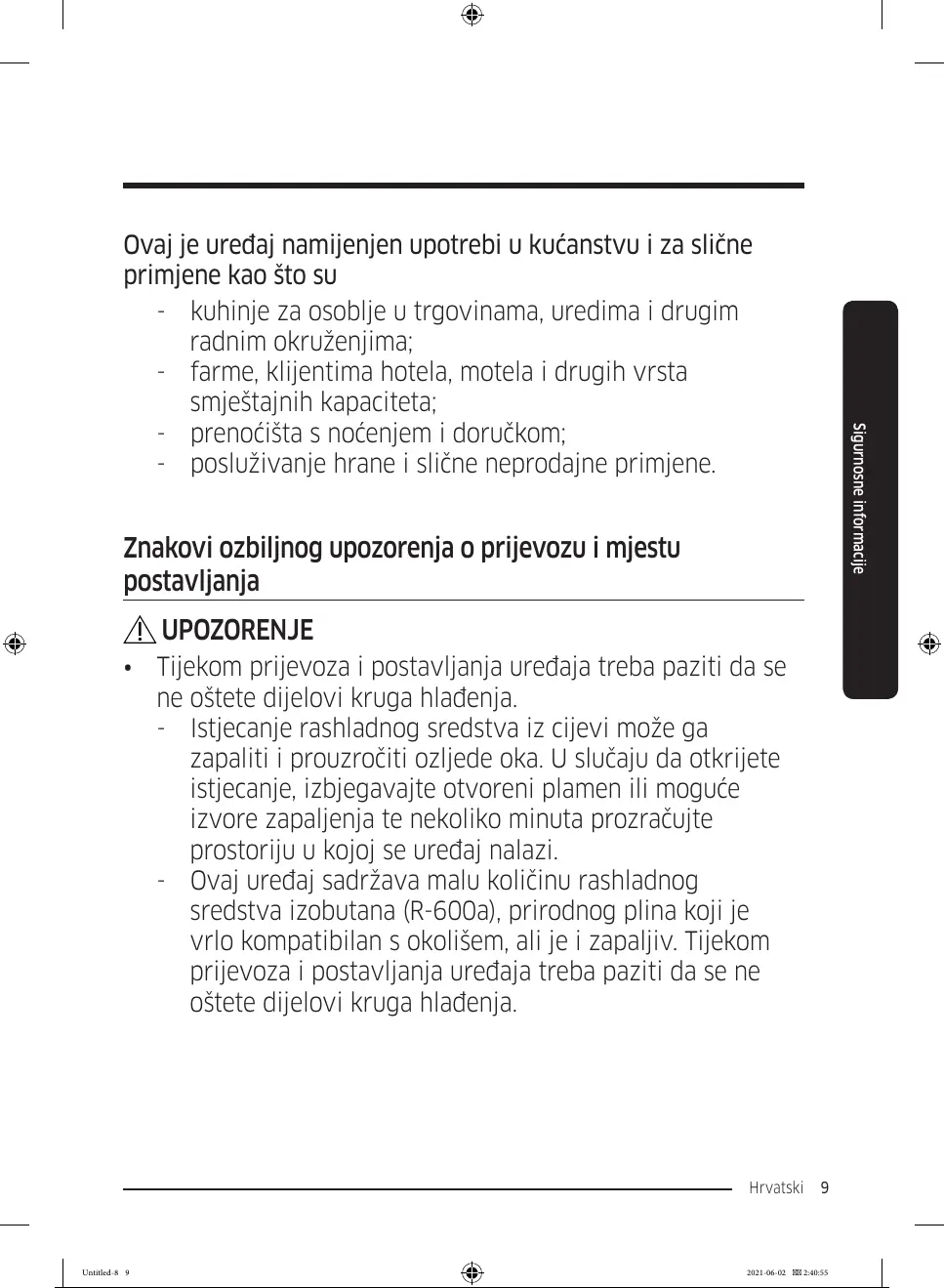 - Ovaj uređaj sadržava malu količinu rashladnog
