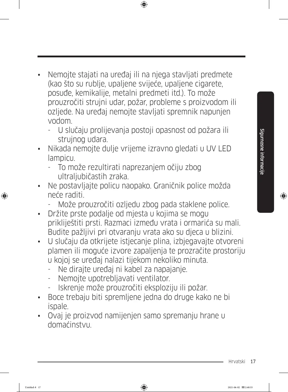• Nikada nemojte dulje vrijeme izravno gledati u UV LED