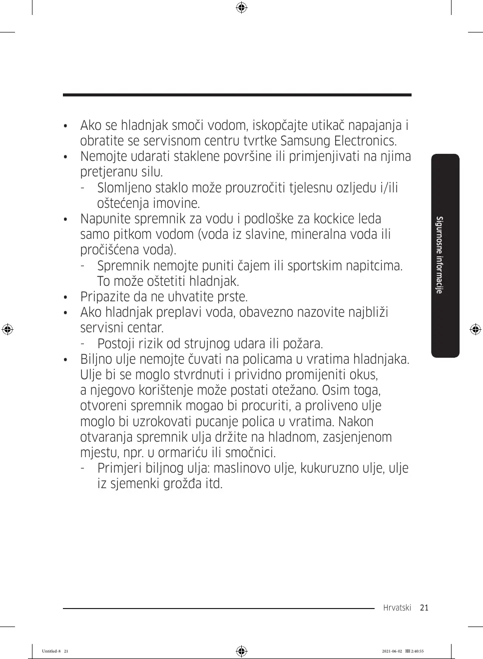 • Biljno ulje nemojte čuvati na policama u vratima hladnjaka.