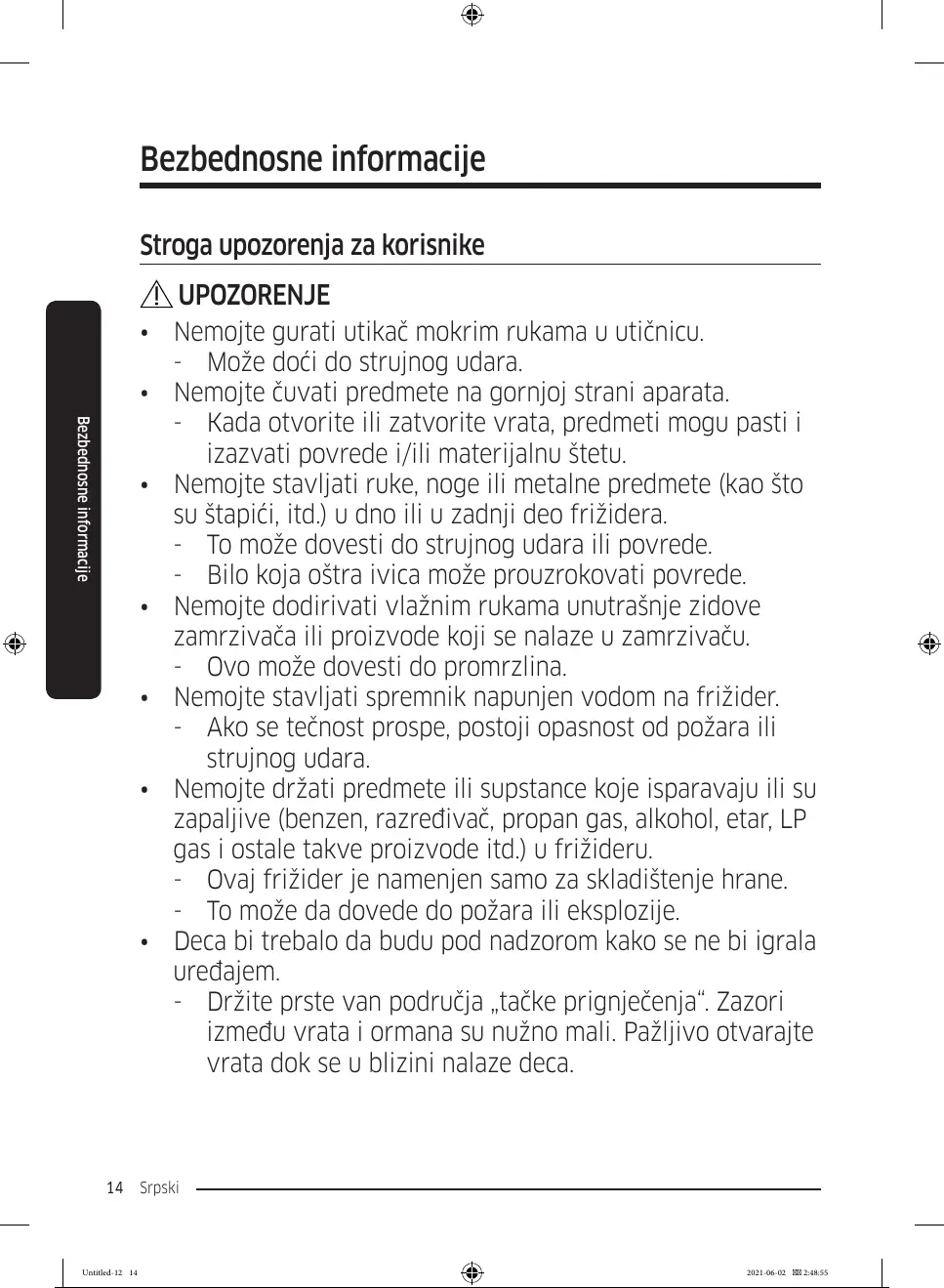 - Ovaj frižider je namenjen samo za skladištenje hrane.