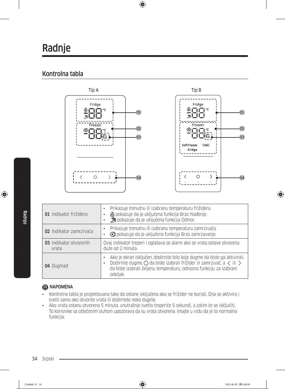 • Kontrolna tabla je projektovana tako da ostane isključena ako se frižider ne koristi. Ona se aktivira i