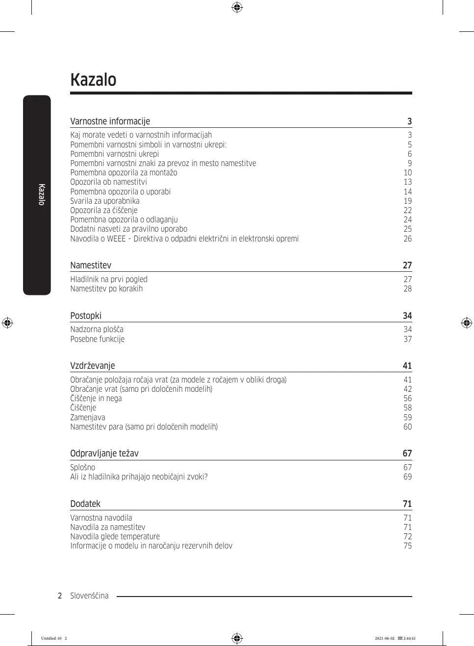 Obračanje položaja ročaja vrat (za modele z ročajem v obliki droga) 41