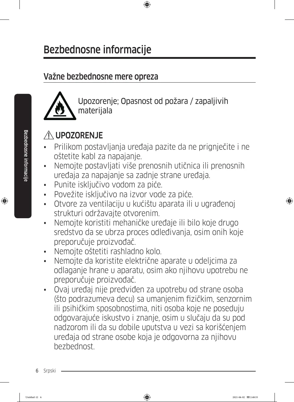 • Ovaj uređaj nije predviđen za upotrebu od strane osoba