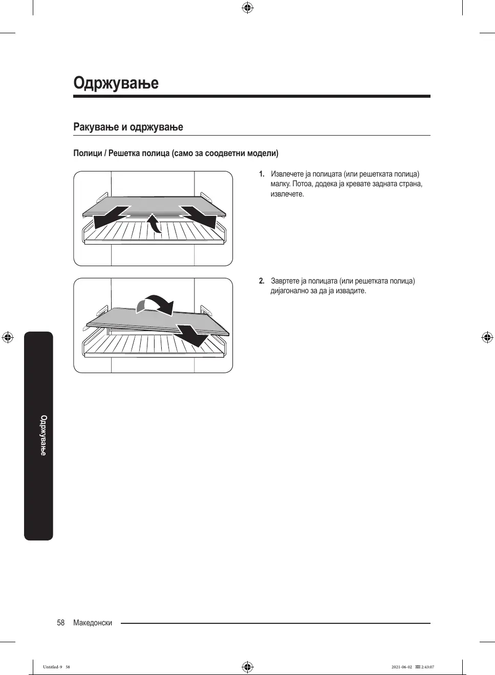 1. Извлечетејаполицата(илирешеткатаполица)