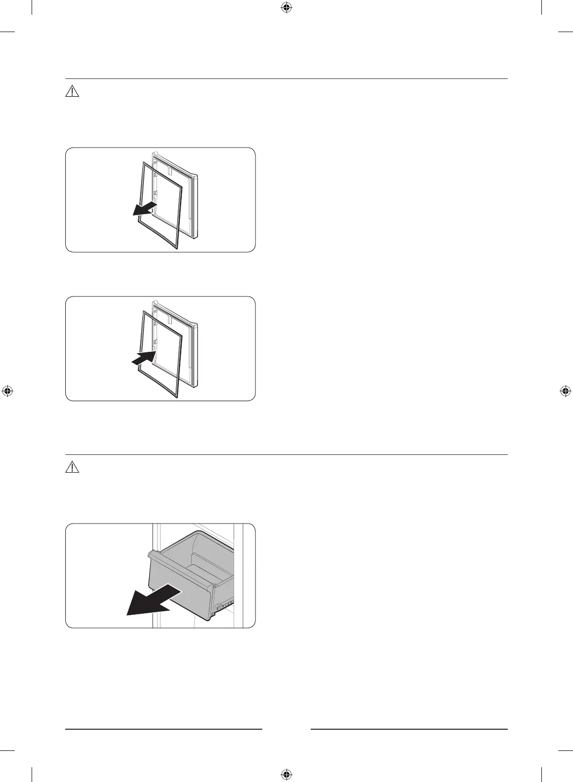 Make sure you rmly attach the gasket. Otherwise, cold air from the refrigerator may leak.