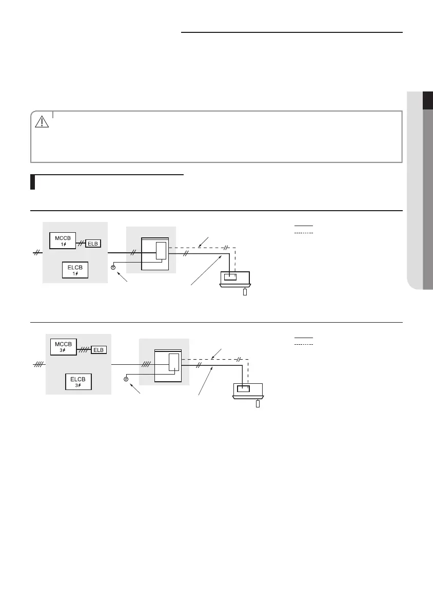If an outdoor unit is installed in a place in danger of an electric leak or submergence, you must install the ELCB.