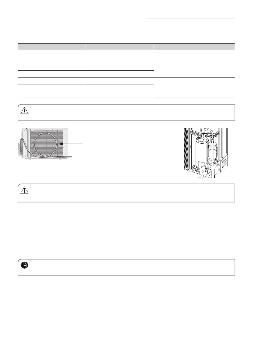 The outdoor unit is loaded with sucient refrigerant for the standard piping. Thus, refrigerant must be added if the piping is
