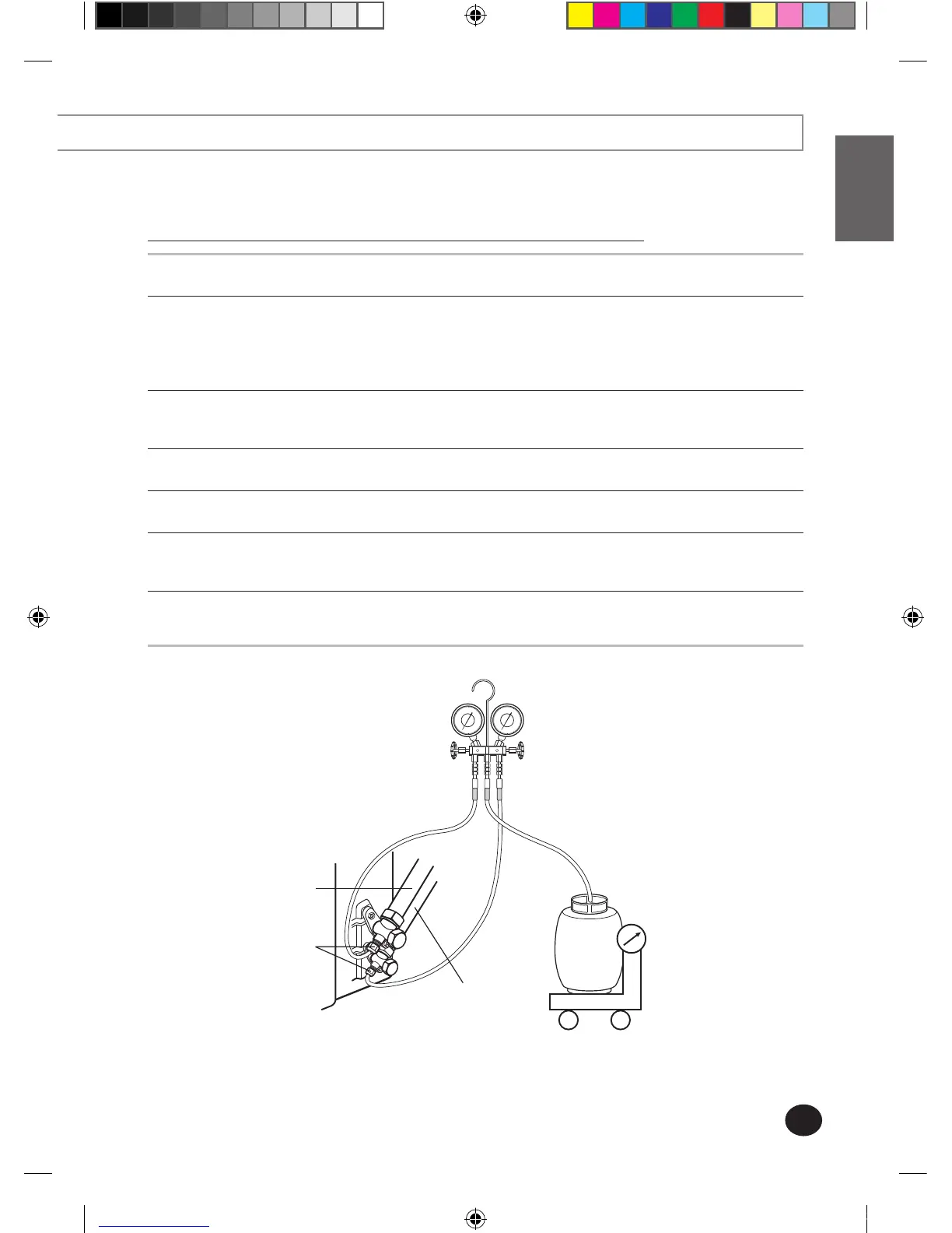 Prepare manifold gauge, scale and an empty refrigerant vessel.