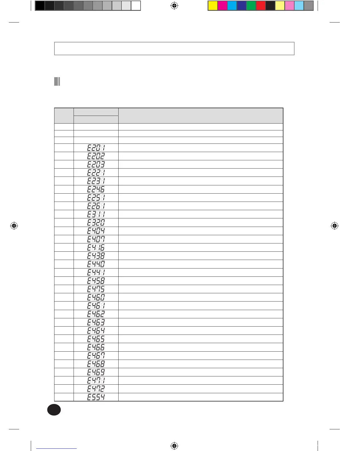 The table below give indication about self diagnostic routine. Some of error code requires activities