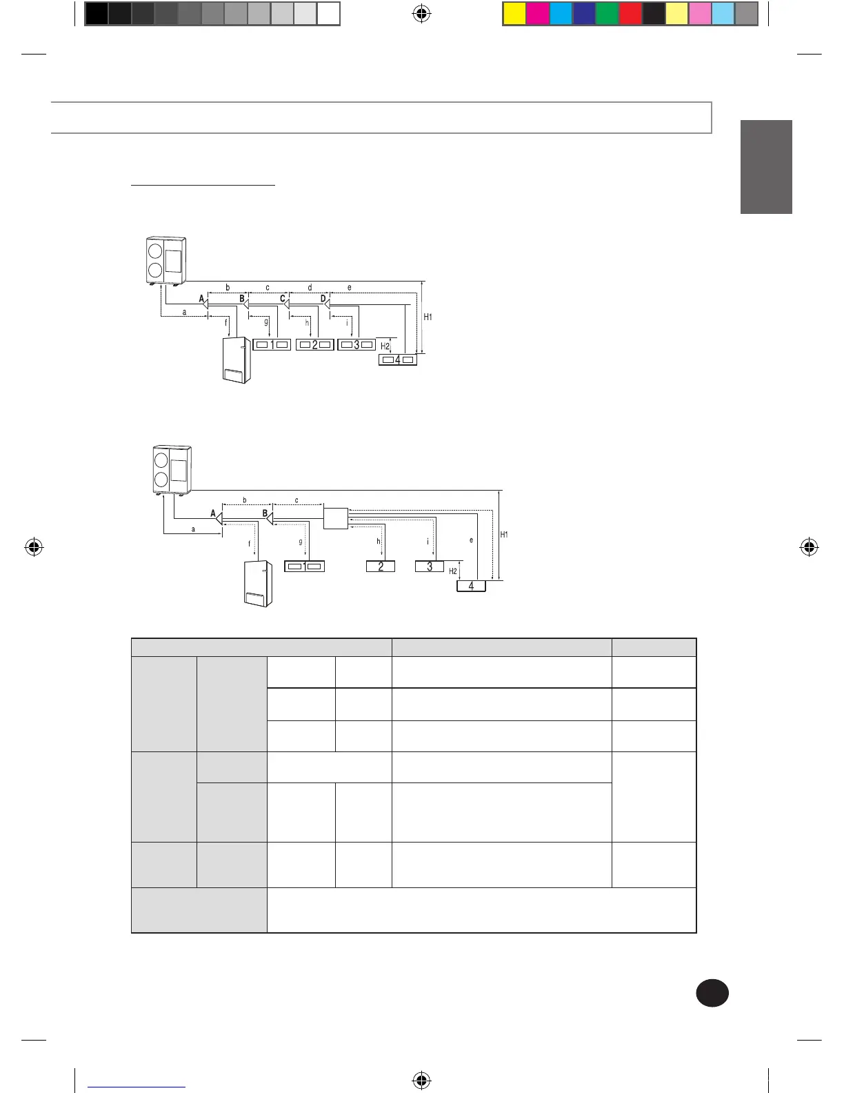 b+c+d+e ≤ 40m (between first Y-joint and indoor unit)