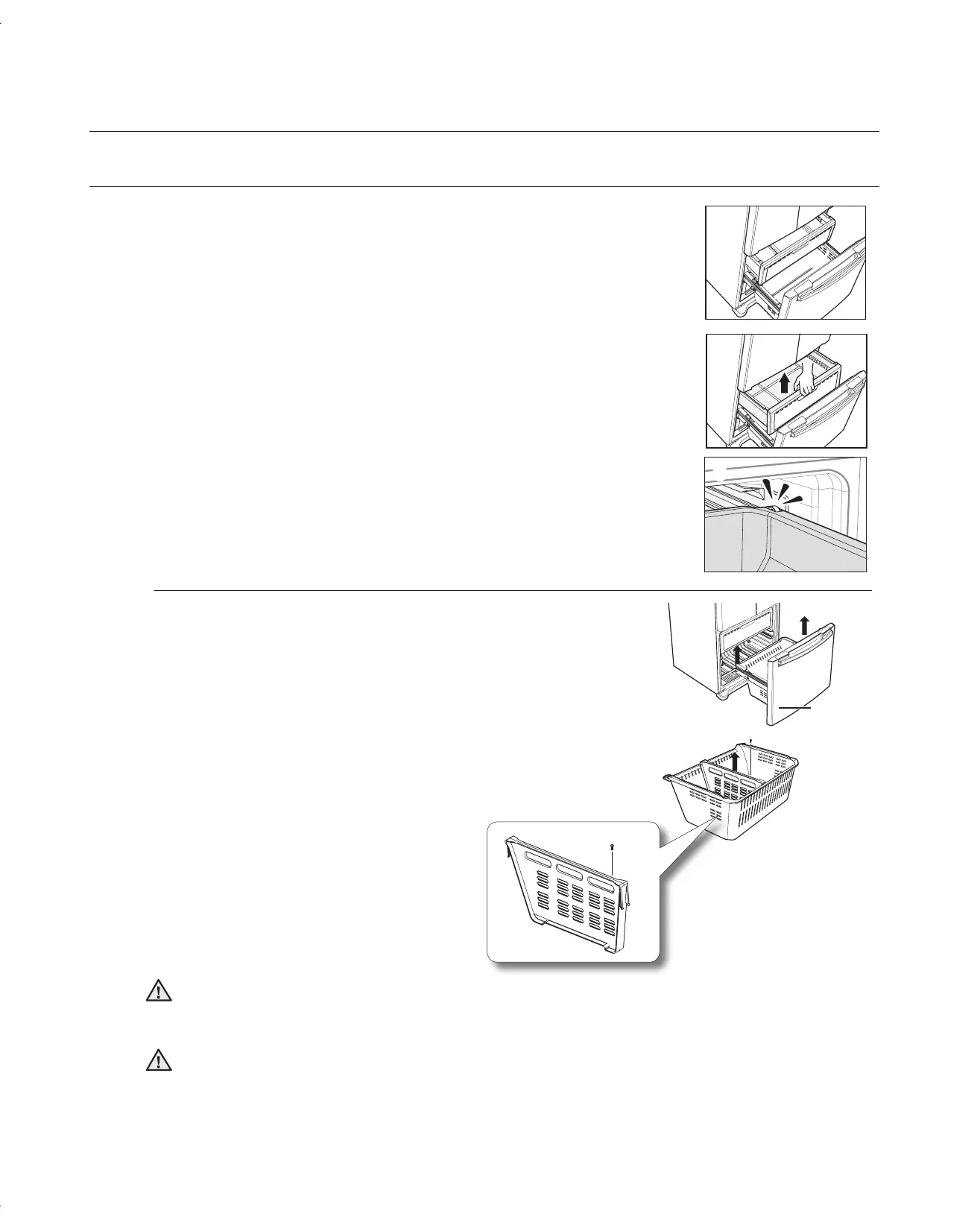 Do not allow baby or children go inside the drawer bin. They could damage the Refrigerator and seriously
