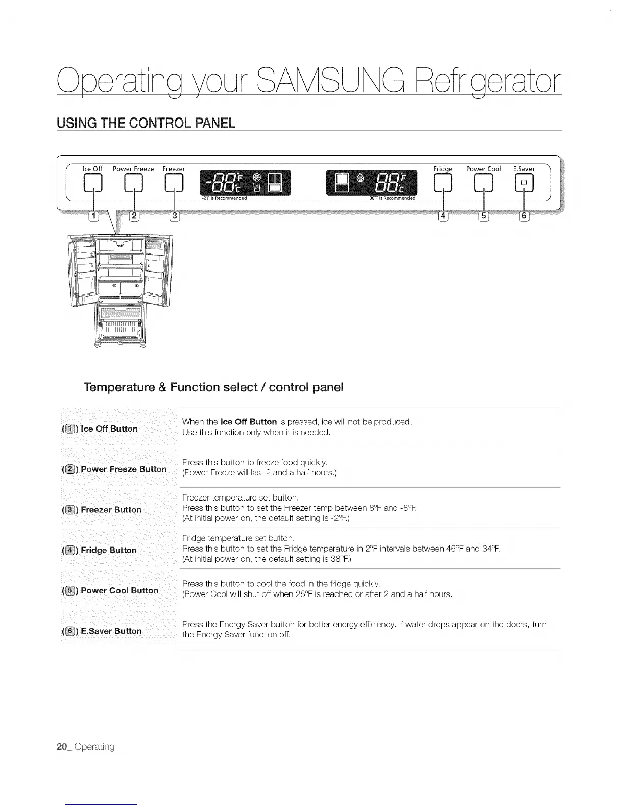 Press this button to set the Fridge temperature in 2°F intervals between 46°F and 34°R