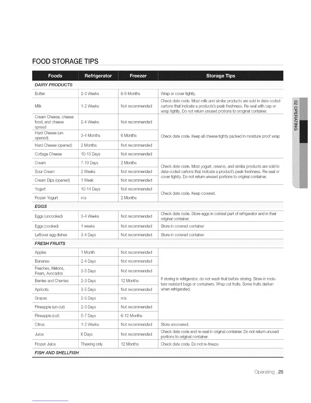 Leftoveregg dishes 3-4 Days Not recommended Store in covered container