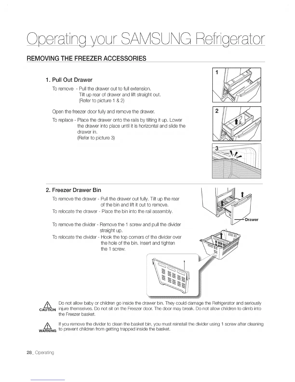 //_k. Do not allow baby or children go inside the drawer bin. They could damage the Refrigerator and seriously