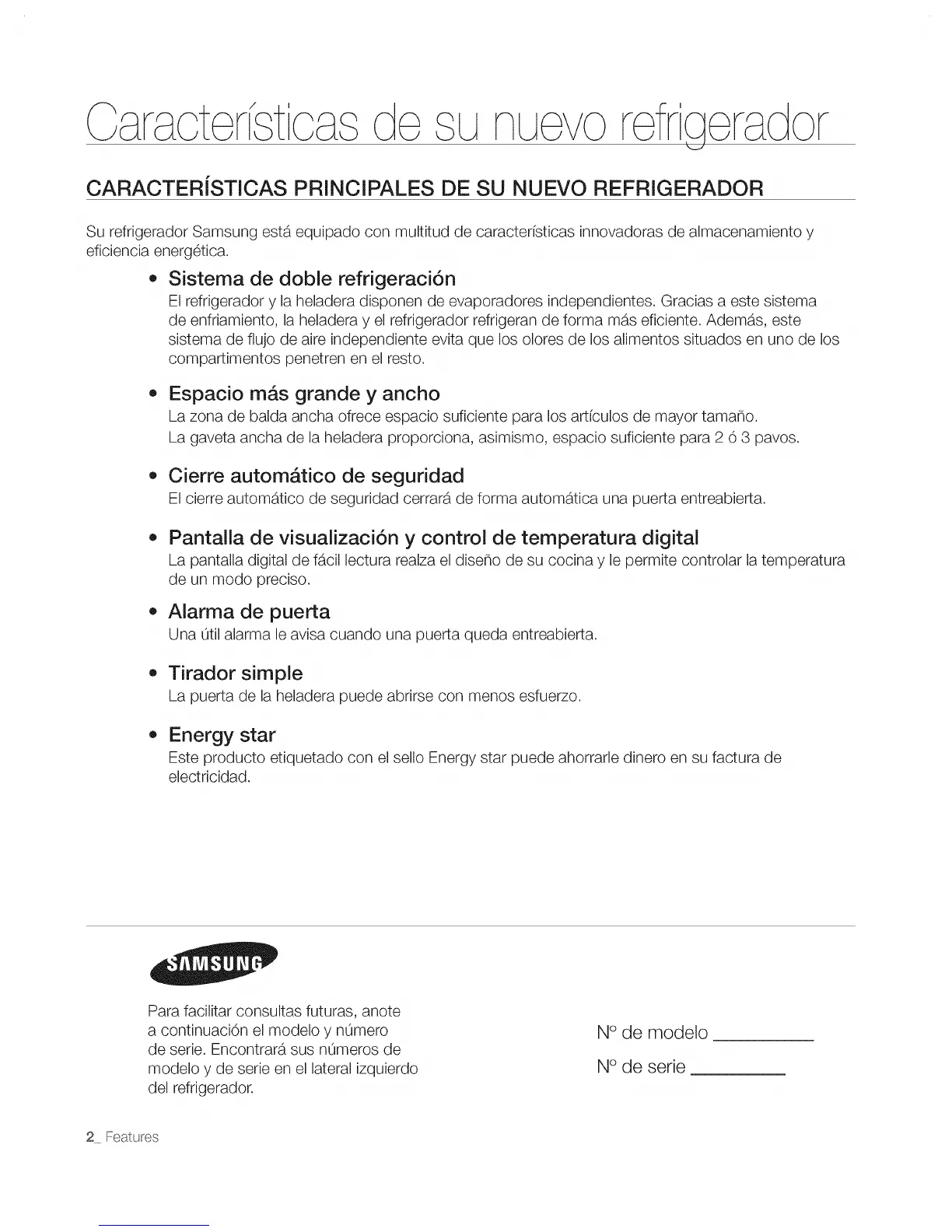 CARACTERISTICAS PRINCIPALES DE SU NUEVO REFRIGERADOR