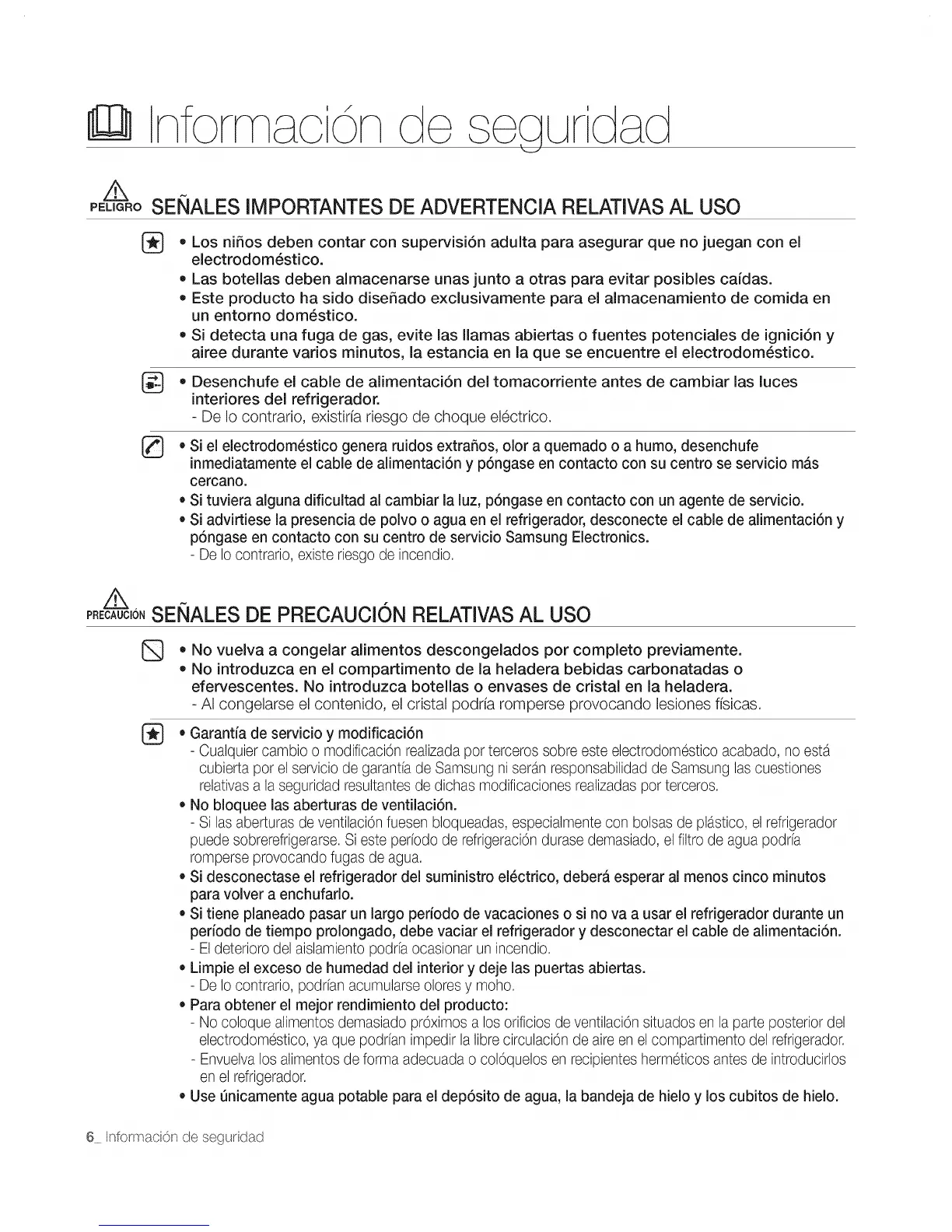 PRE&I6NSENALES DE PRECAUCION RELATIVASAL USO