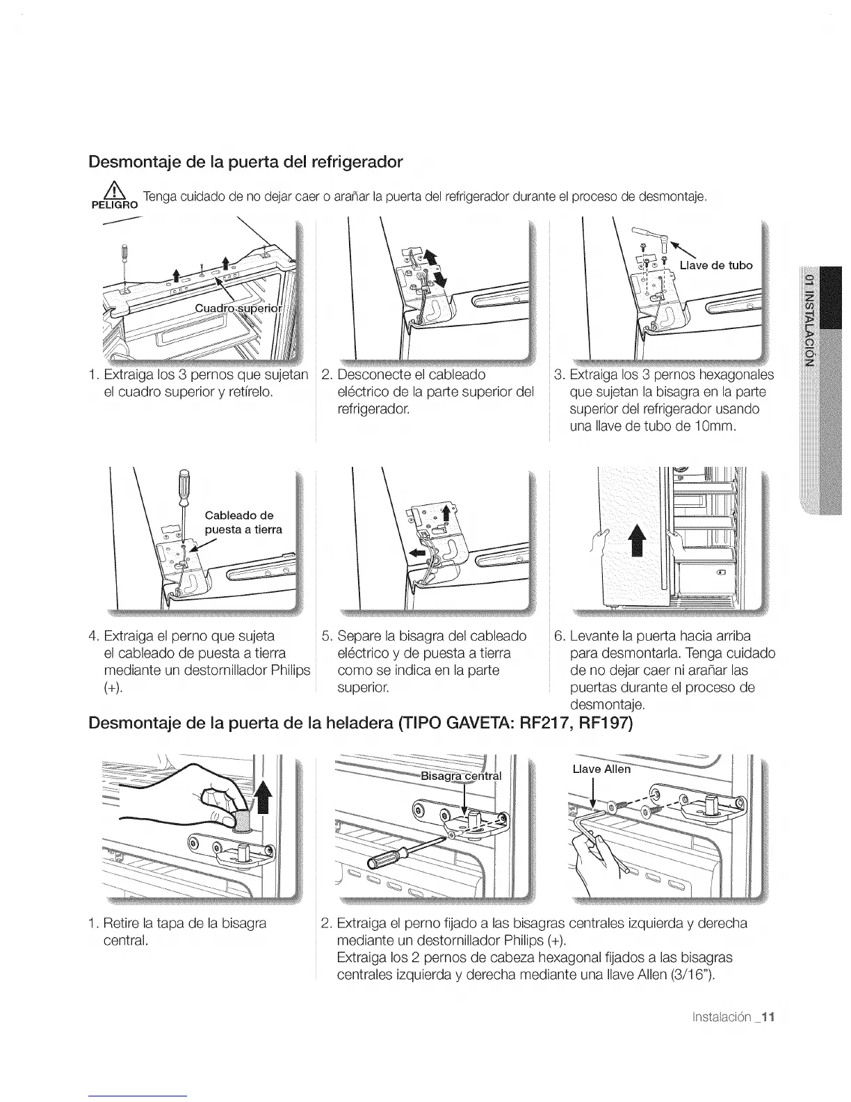 Z_ Tenga cuidado de no dejar caer o ara_ar la puerta del refrigerador durante el proceso de desmontaje.