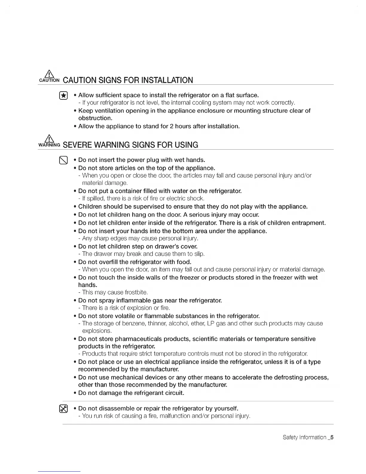 • Do not let children enter inside of the refrigerator. There is a risk of children entrapment.