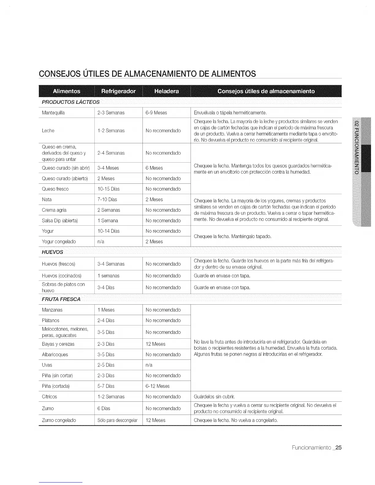 Huevos(frescos) 3-4 Semanas No recomendado dot y dentro de su envaseoriginal.
