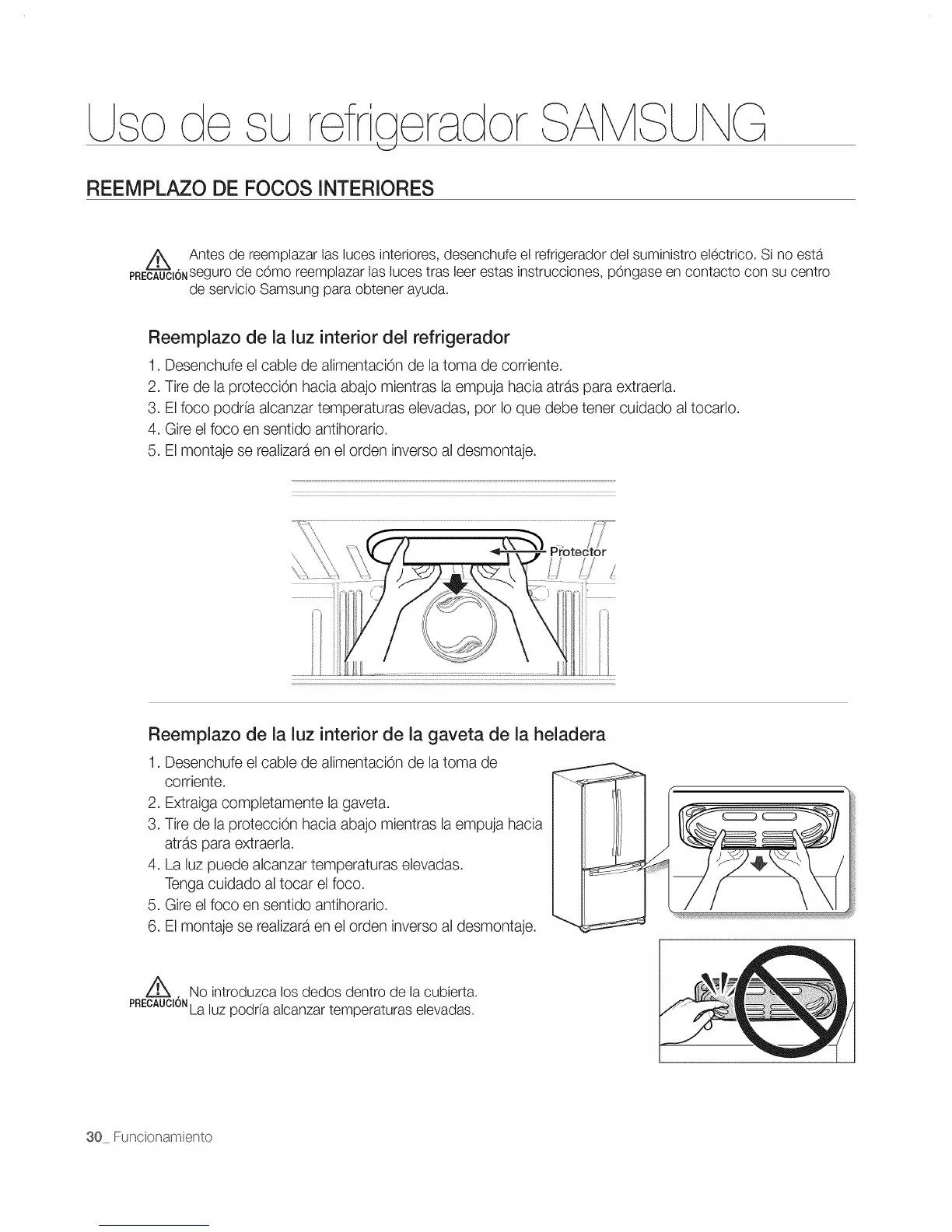 //_ Antes de reemplazar las luces interiores, desenchufe el refrigerador del suministro electrico. Si no esta