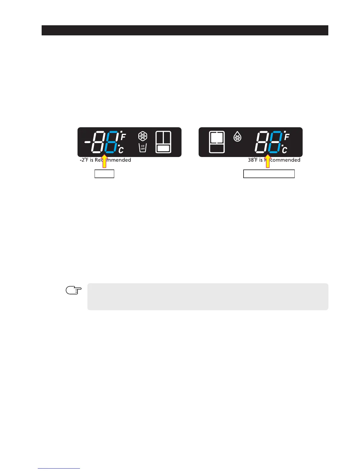 set, standard temperature of freezer compartment will be lower than -6℉(-3℃).(Refer to the picture