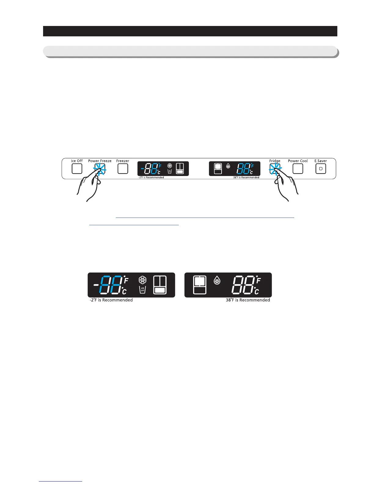 Freezer compartment -8℉(-22℃), Fresh food compartment 34℉(1℃).