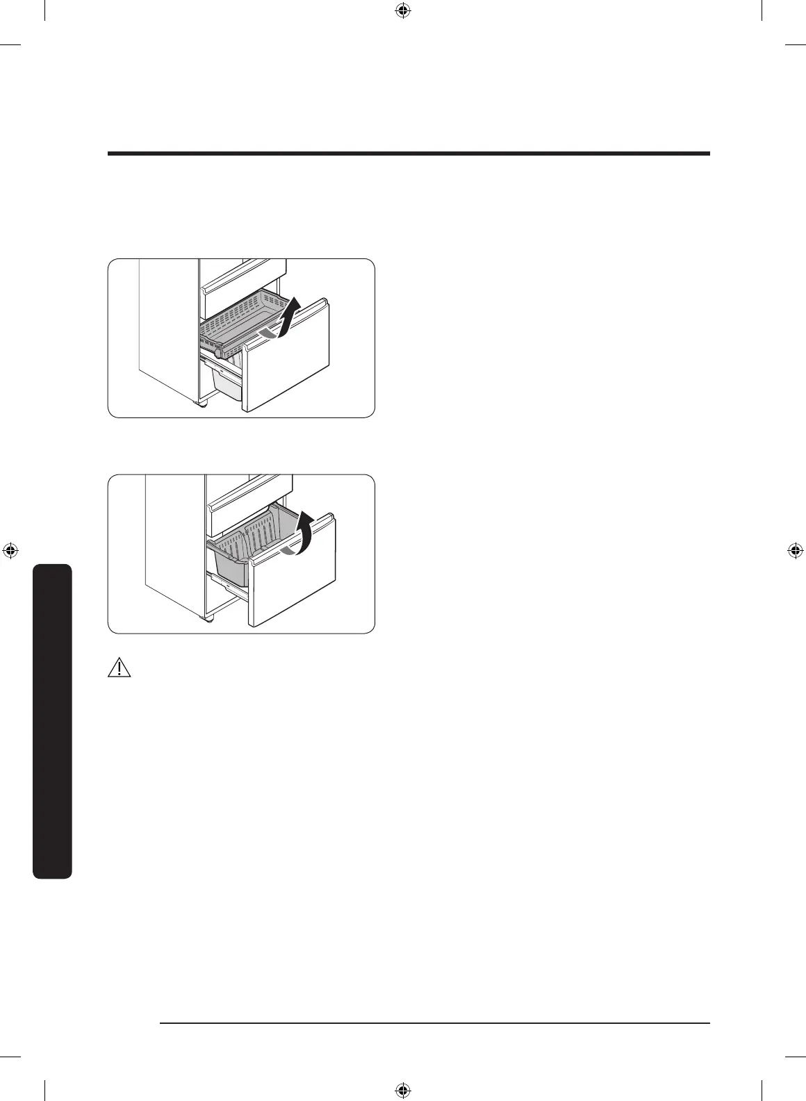 la cesta superior completamente hacia adelante. De lo contrario, el cajón no se podrá abrir ni cerrar