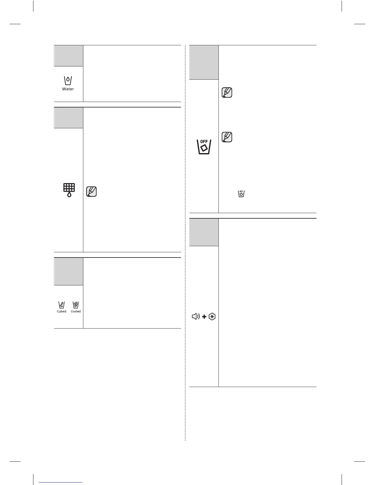 cubos/Hielo triturado), todas las teclas de