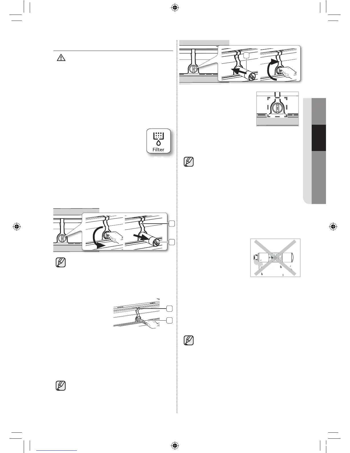 Push the filter, and then turn it clockwise until it 4.