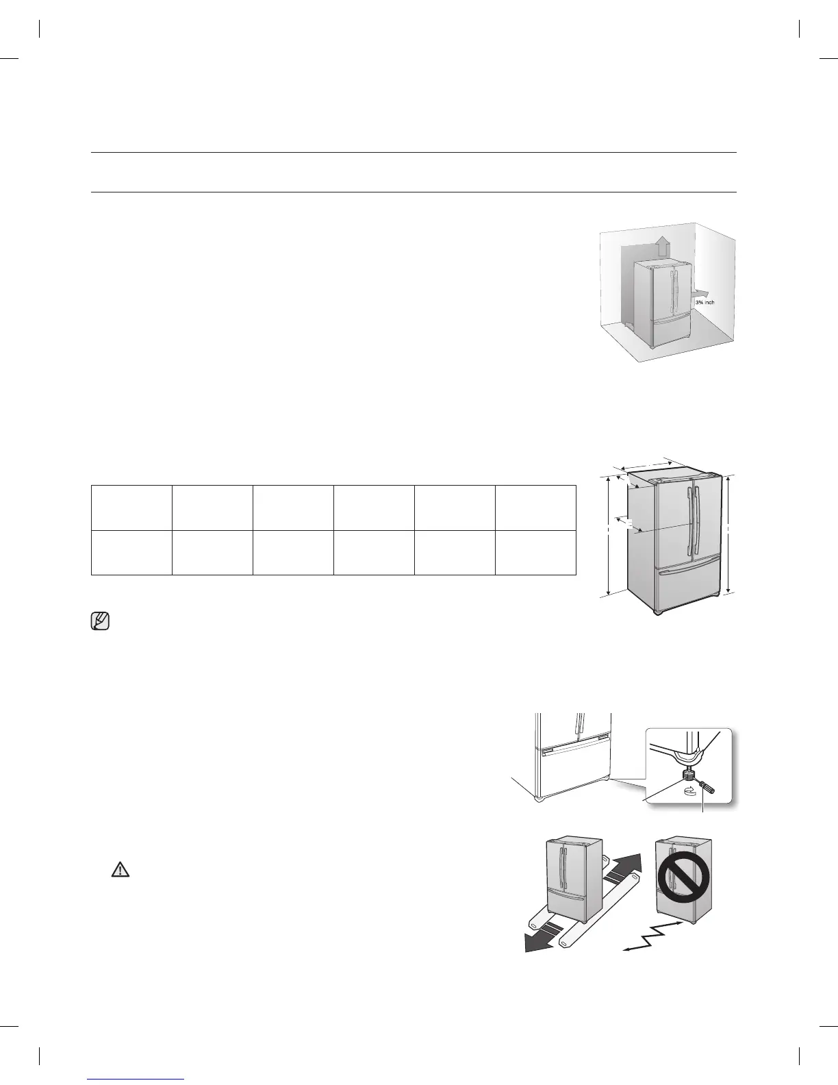Do not install the Refrigerator where the temperature will go below 50 ºF (10 ºC).