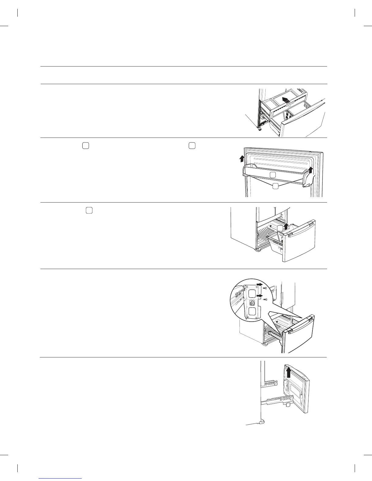 5. 레일 위쪽으로 냉동실 문을 들어 올리세요.