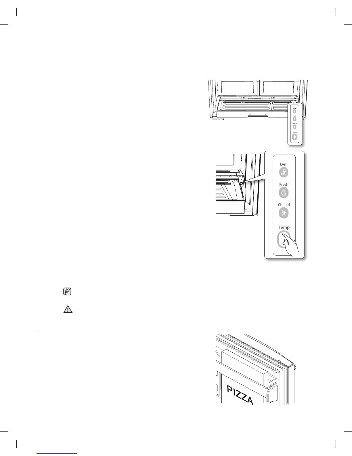 1. “Deli”를 선택하면, 식품 저장실의 온도가 41°F(5°C) 정도로