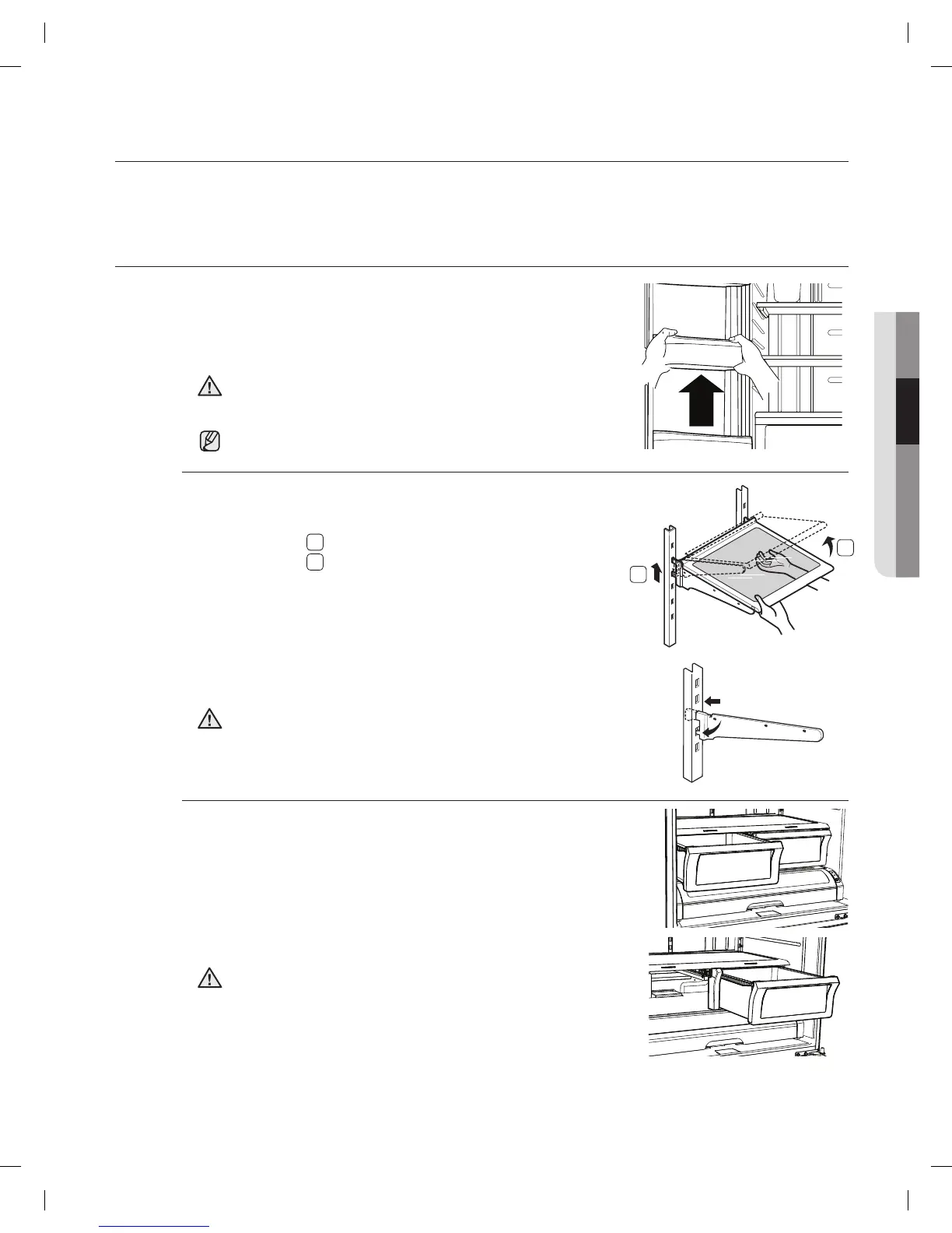 분리하려면 - 그림과 같이 선반 앞쪽을 위로 기울이고