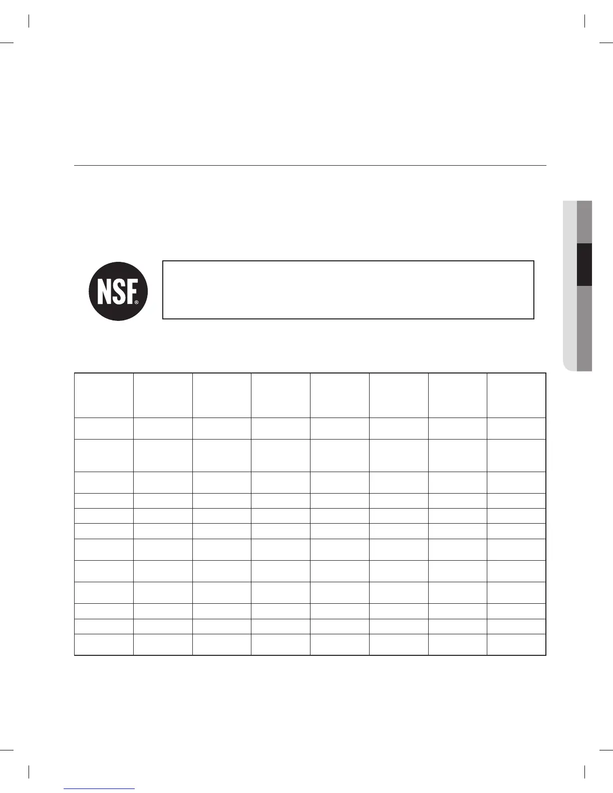 equal to the permissible limit for water leaving the system, as specifi ed in NSF/ANSI 42 and 53.