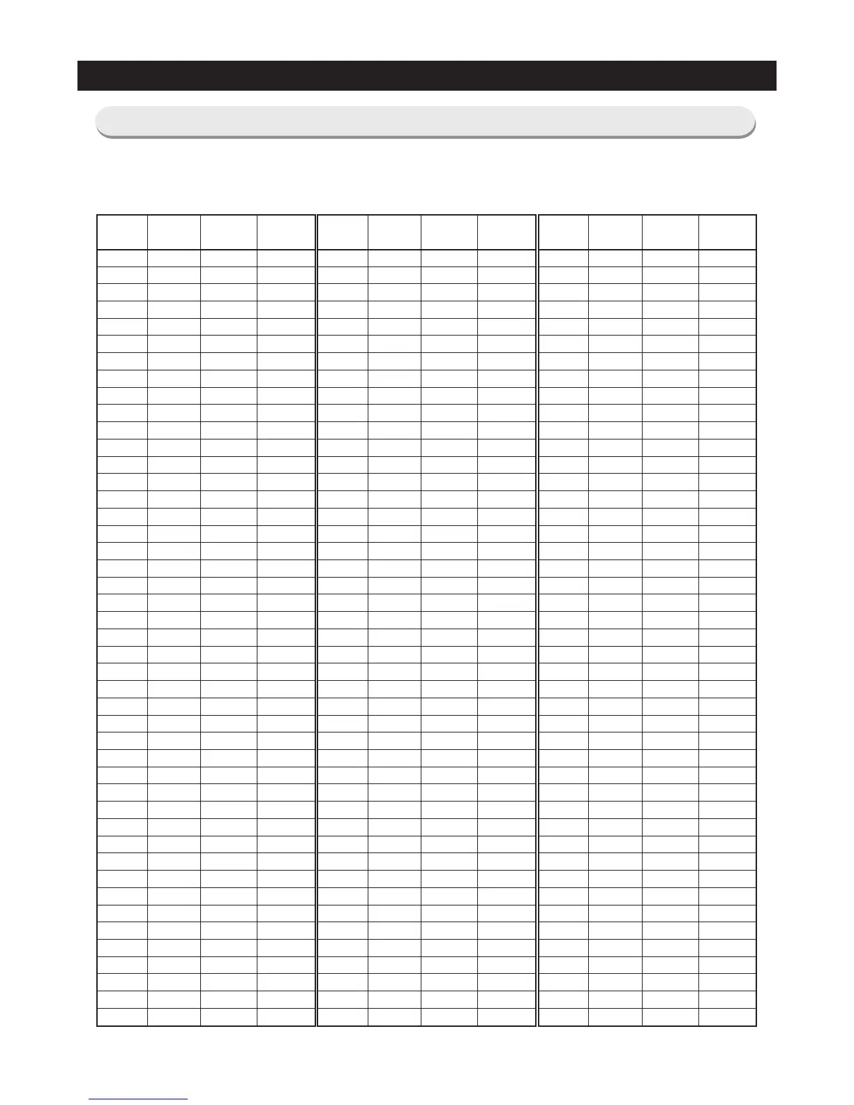 ( Actual measurement = value of the table below X 2 )