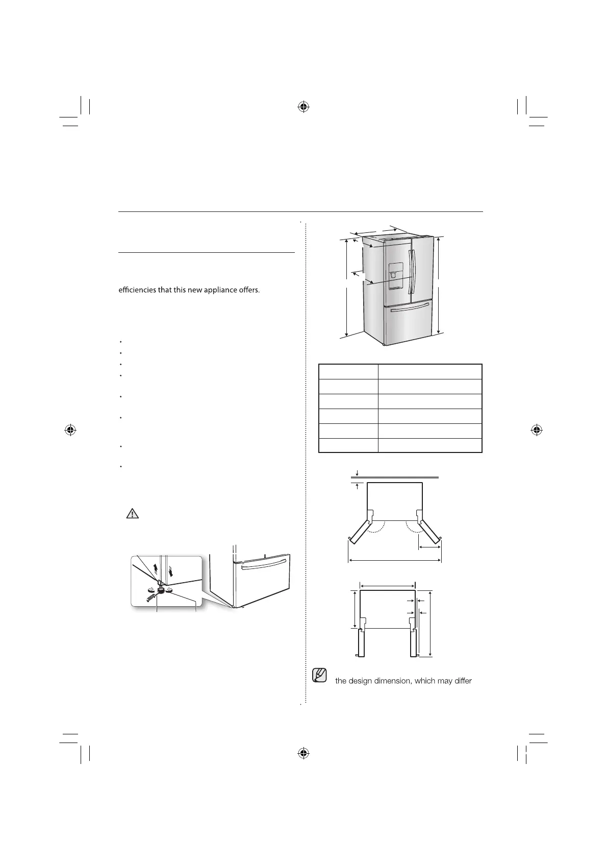 the floor). Refer to ‘Adjusting the Level’ in