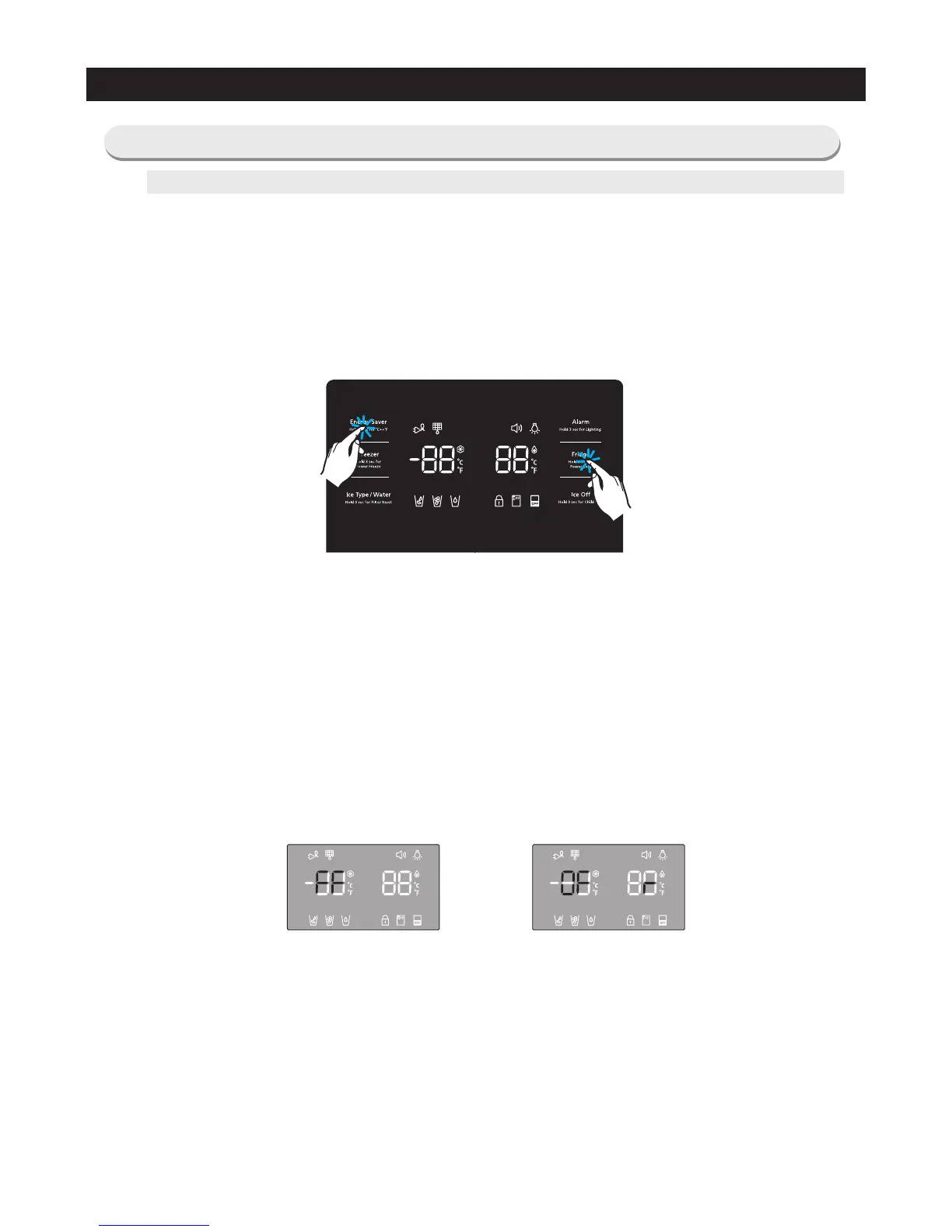 ① Energy Saver Key + Fridge Key are pressed simultaneously for
