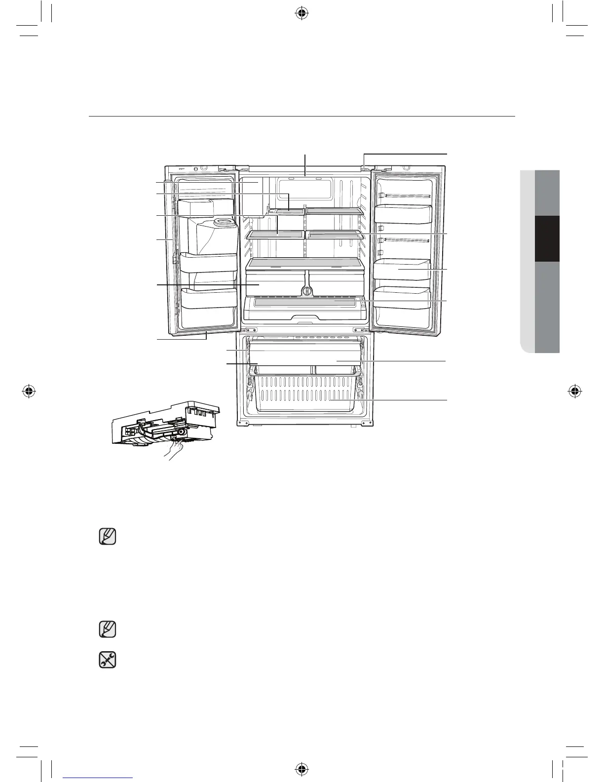 Cette page permet de vous familiariser avec les pièces et caractéristiques du réfrigérateur.