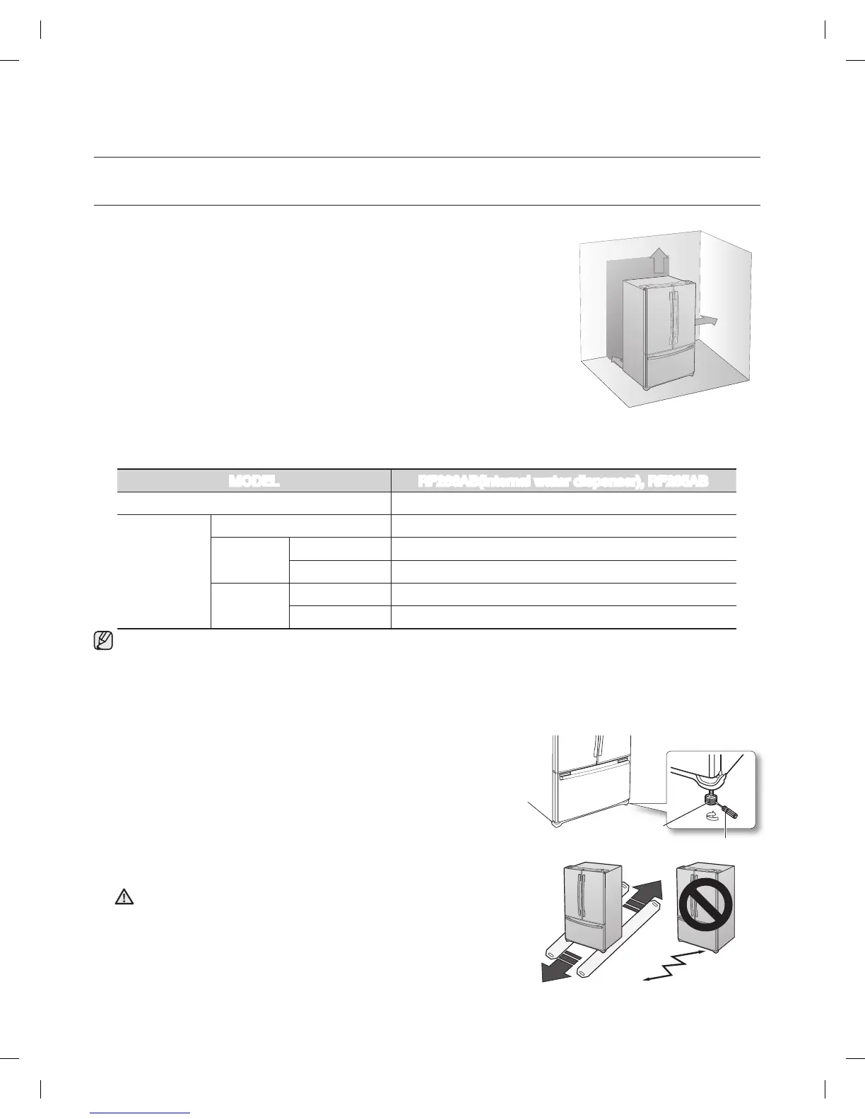 Do not install the Refrigerator where the temperature will go below 50 ºF (10 ºC).