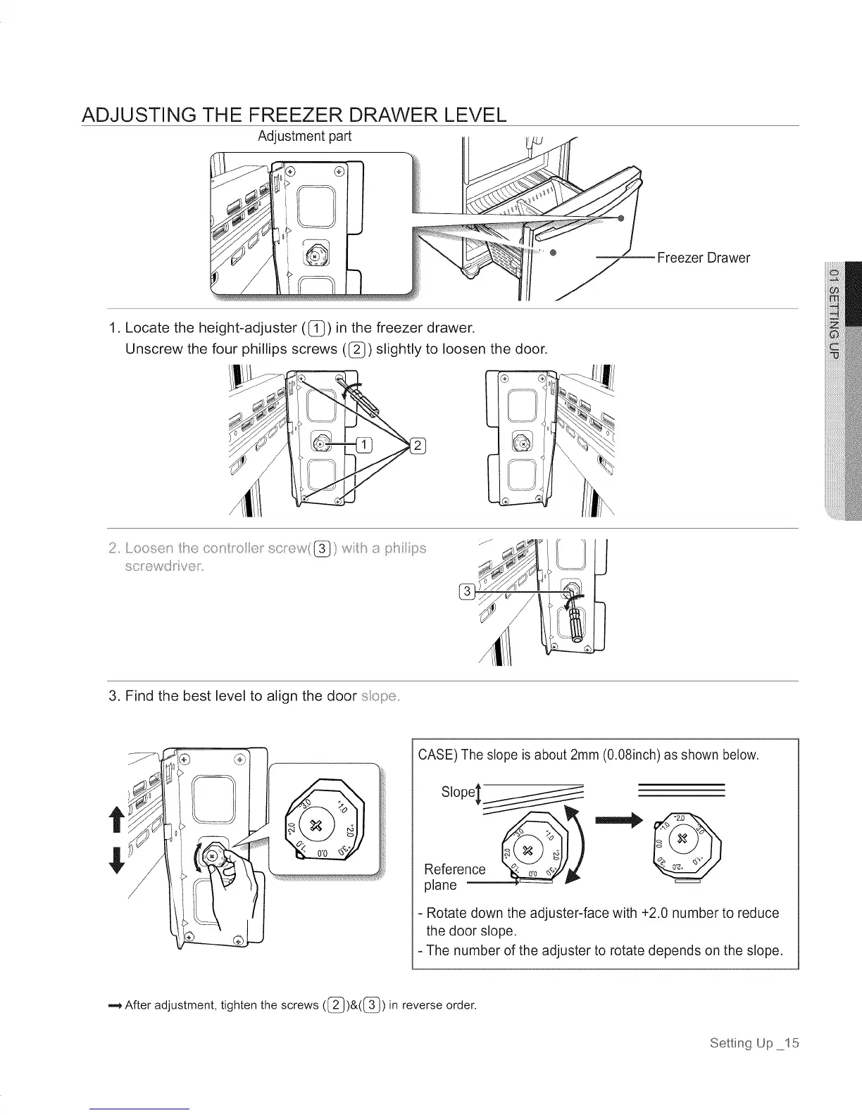ADJUSTING THE FREEZER DRAWER LEVEL