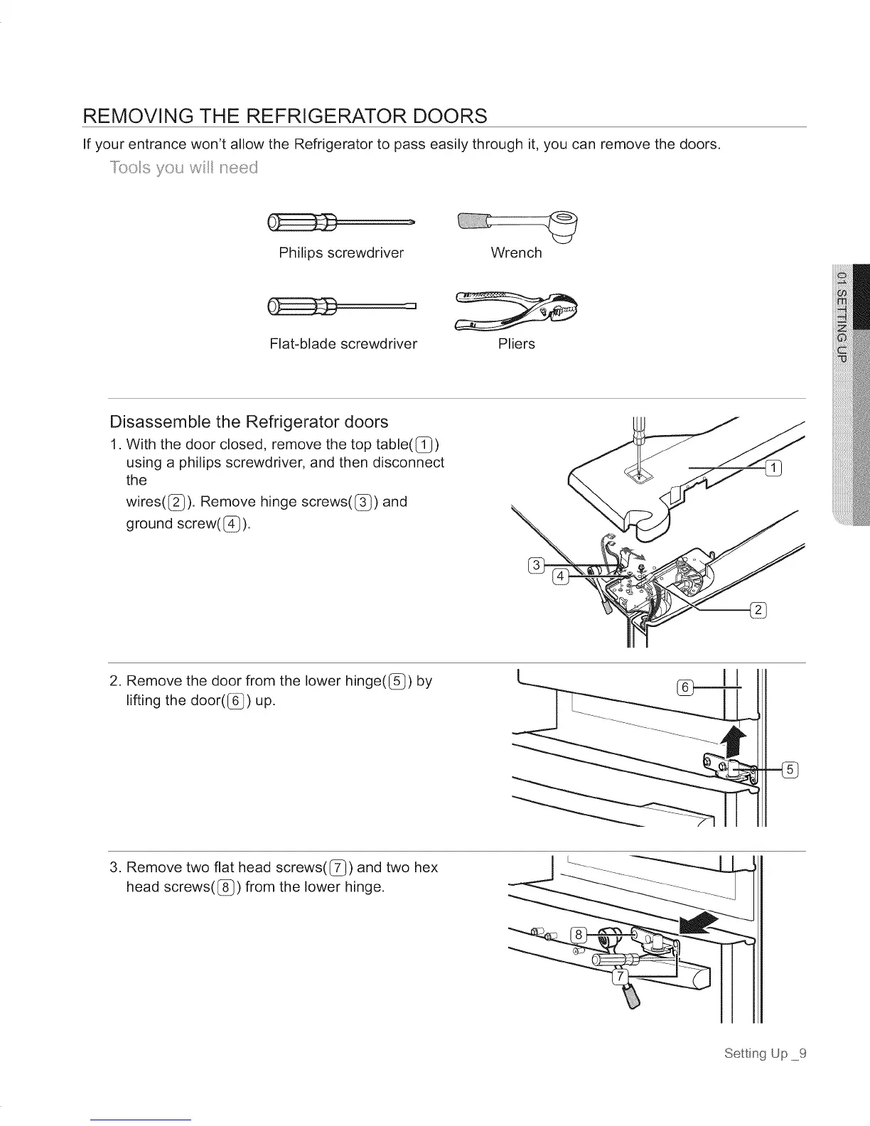REMOVING THE REFRIGERATOR DOORS