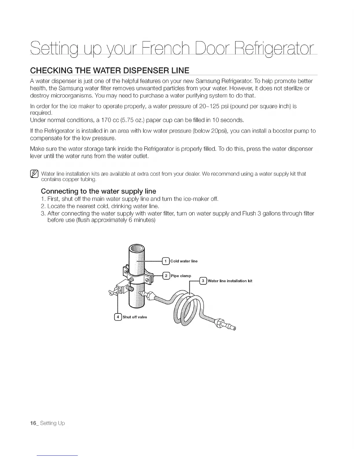 _ Water line installation kits are available at extra cost from your dealer. We recommend using a water supply that